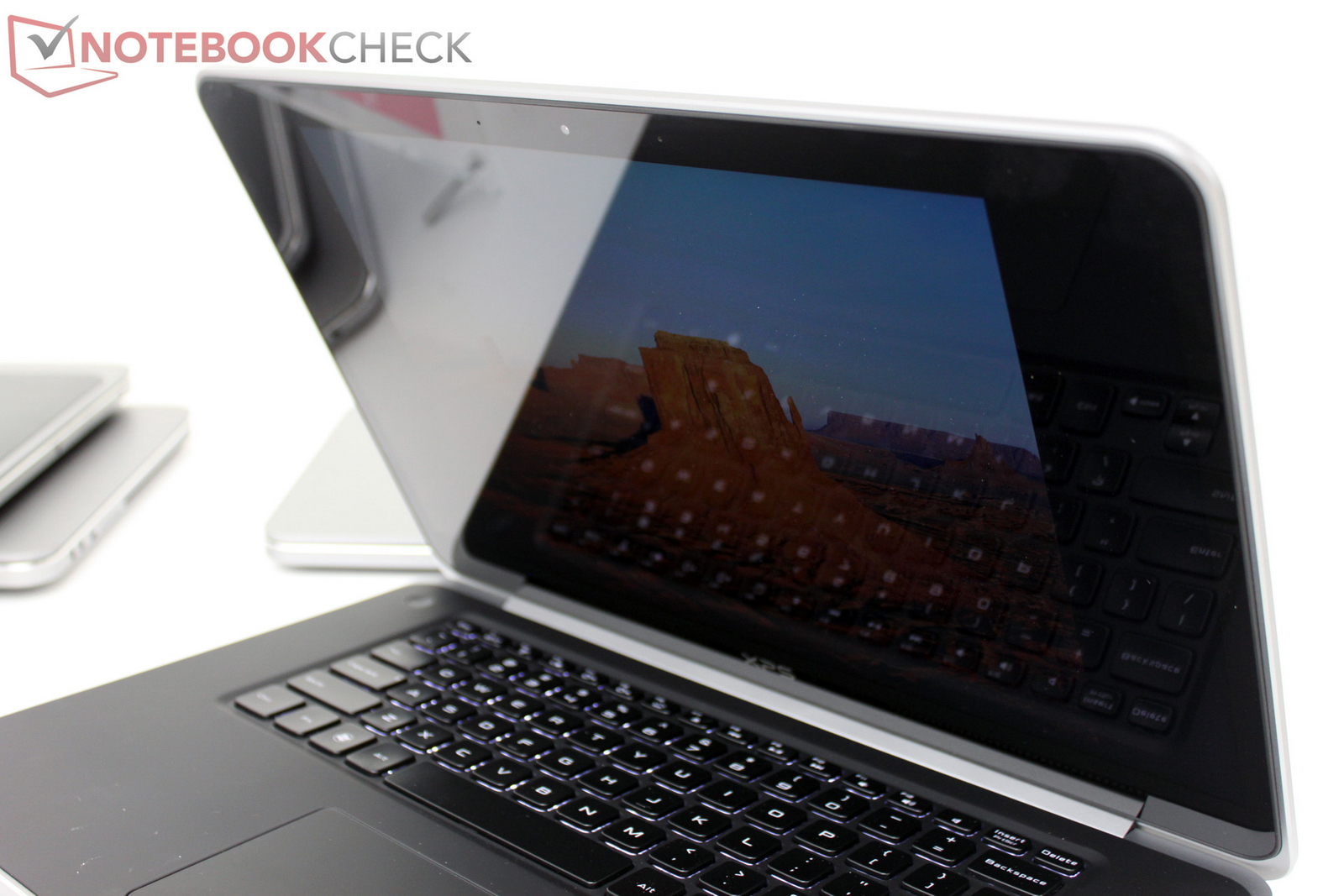 Vor Ort auf dem Dell Technology Camp 2012 wirkten die Displays beider XPS-Notebooks recht farbkräftig und hell. Leider verzichtet Dell bei seinen neuen XPS 14 und XPS 15 auf entspiegelte oder matte Displays, beide Notebook-LCDs spiegeln sehr. Wie auch auf den Hands-On-Bildern des XPS 14 und XPS 15 unschwer zu erkennen ist, spiegelt sich in den "glossy" Edge-to-Edge-Displays (rahmenlos) nicht nur die Beleuchtung sondern auch das direkte Umfeld.