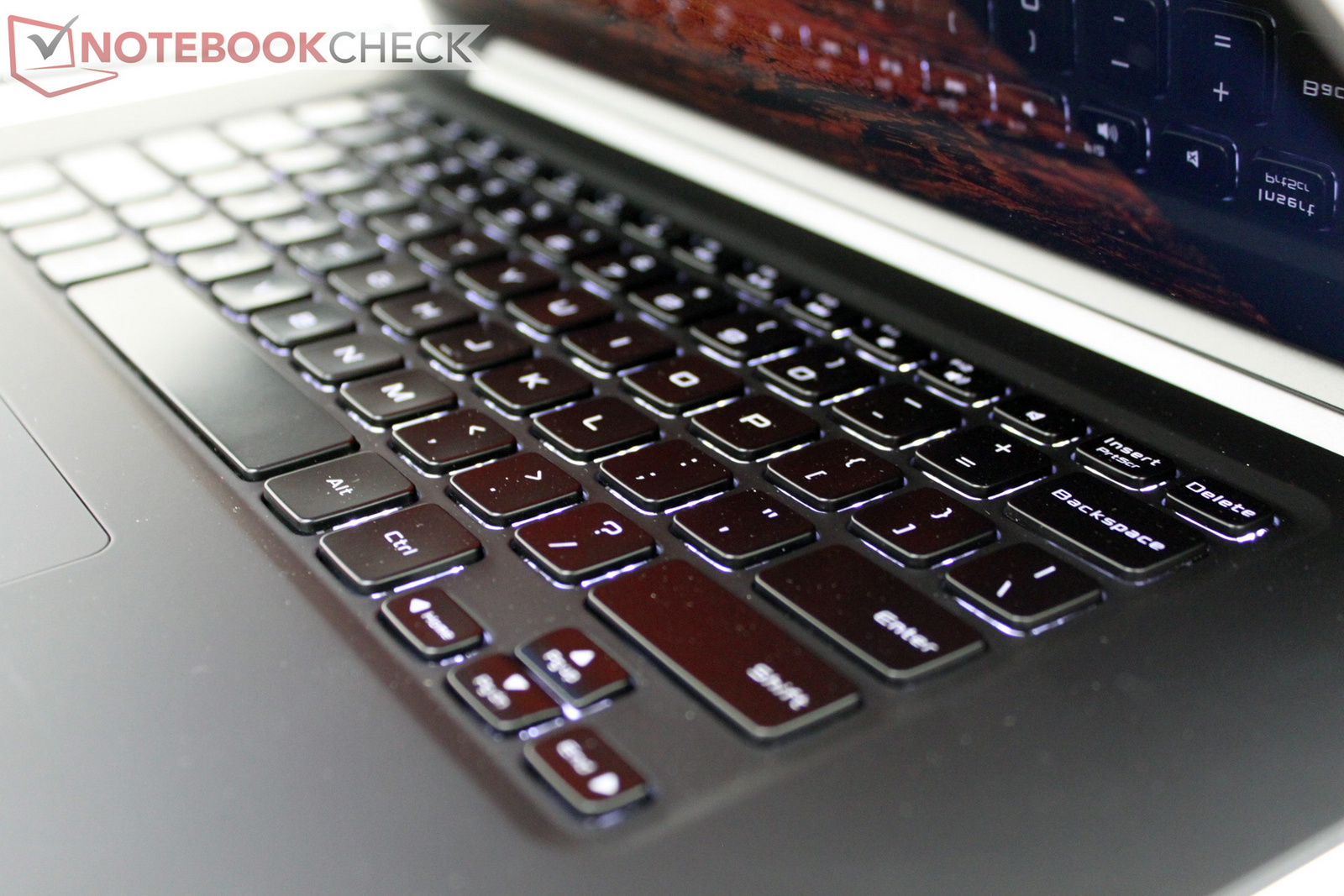 Auch bei den Eingabegeräten setzt sich der positive Ersteindruck bei den neuen Serien XPS 14 und XPS 15 von Dell fort. Die Tastatur wusste bereits nach den ersten Tippversuchen auf Anhieb mit einem guten Druckpunkt zu gefallen. Die Tastatur ist zudem solide und fest in das Chassis eingesetzt. Beim Schreiben stört kein Nachfedern oder gar Durchfedern der Tastaturfläche und Tasten. Die Tastaturbeleuchtung ist bei gedämpftem Umgebungslicht schlicht praktisch und obendrein schick anzusehen. Das Touchpad ist als "Clickpad" ausgeführt und lässt sich grundsätzlich ordentlich bedienen. Fehlende dedizierte Tasten erfordern aber beispielsweise bei Drag&Drop-Befehlen etwas Eingewöhnung.