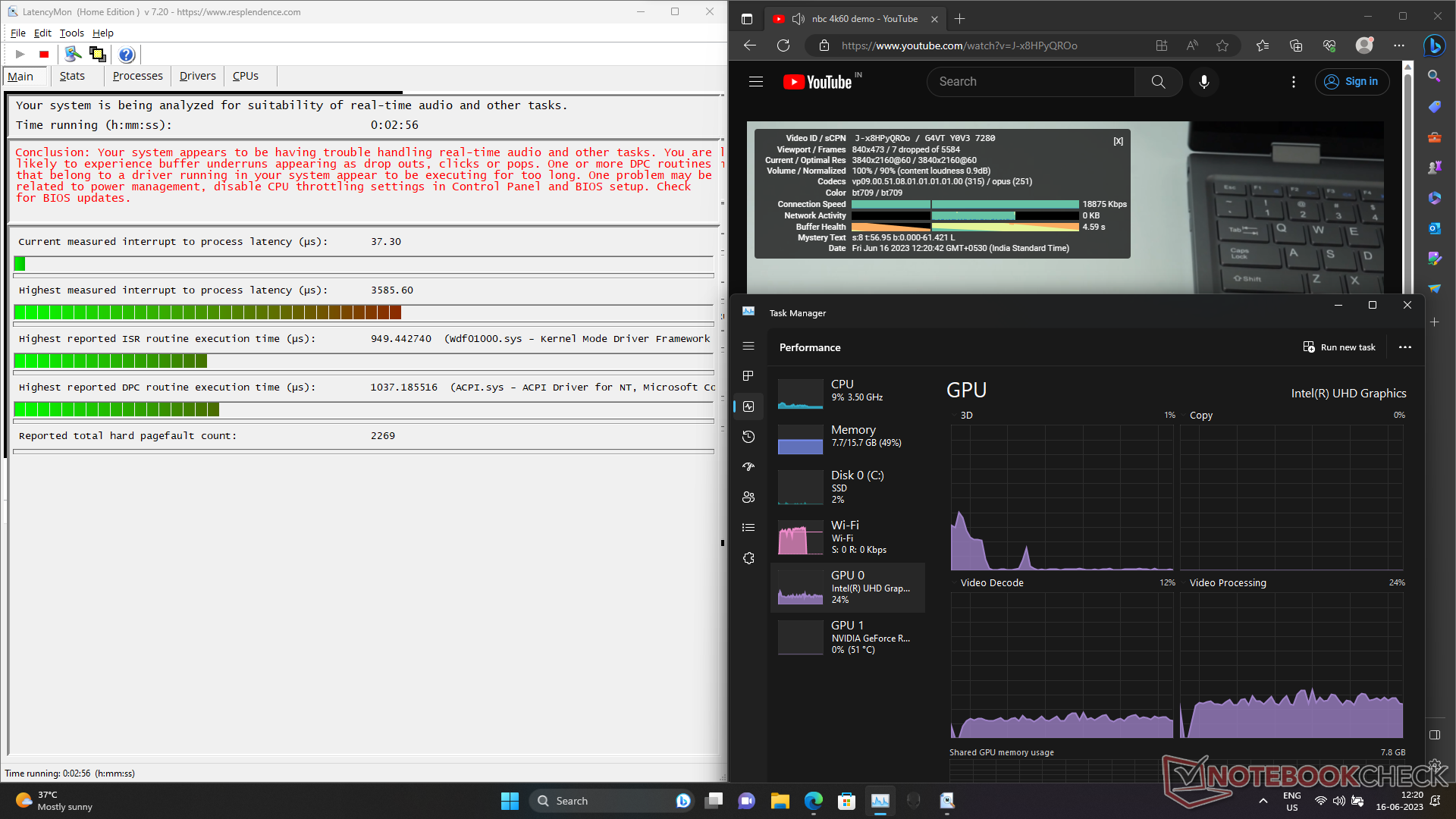 Solange der Laptop nicht andauernd unter Volllast betrieben wird, besitzt der 86-Wh-Akku eine ziemlich üppige Akkulaufzeit. Beispielsweise kann man bei 1080 p und 150 Nits Helligkeit fast 7 Stunden Videos streamen. Wird das Notebook jedoch mehr gefordert, reduziert sich diese Dauer ziemlich stark, was bedeutet, dass es dann nur mehr knapp eine Stunde durchhält.