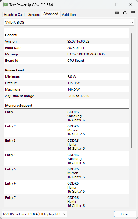 | Dell G15 5530 Intel Core i7-13650HX, NVIDIA GeForce RTX 4060 Laptop GPU | Asus ROG Strix G18 G814JI Intel Core i7-13650HX, NVIDIA GeForce RTX 4070 Laptop GPU | Lenovo Legion Pro 5 16IRX8 Intel Core i7-13700HX, NVIDIA GeForce RTX 4060 Laptop GPU | Asus ROG Flow X16 GV601V Intel Core i9-13900H, NVIDIA GeForce RTX 4060 Laptop GPU | MSI Katana 17 B13VFK Intel Core i7-13620H, NVIDIA GeForce RTX 4060 Laptop GPU | Asus TUF Gaming A16 FA617XS AMD Ryzen 9 7940HS, AMD Radeon RX 7600S | Asus ROG Strix G17 G713PI AMD Ryzen 9 7945HX, NVIDIA GeForce RTX 4070 Laptop GPU | Medion Erazer Major X20 Intel Core i9-13900HX, NVIDIA GeForce RTX 4070 Laptop GPU | |