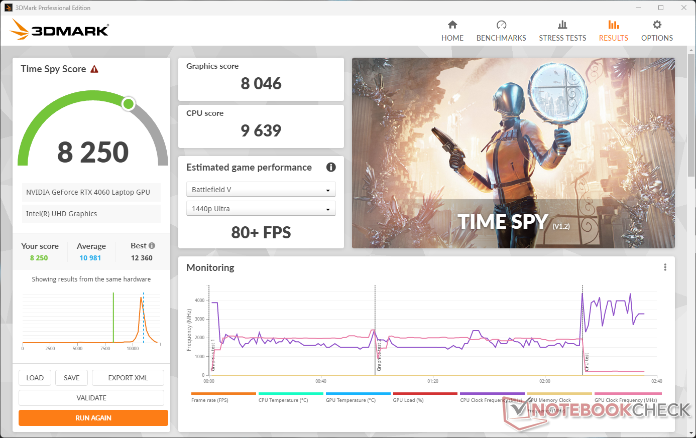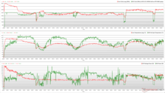 Bei Witcher 3 waren die Ergebnisse der CPU und GPU bei 1080-p-Ultra-Einstellungen ziemlich vorhersehbar. Bei diesem erreicht die CPU eine Taktrate von 4,1 GHz (bei 70 W) und die GPU eine Rate von 2.535 MHz (bei 118 W). Nach 30 Minuten gab es zwar einen kurzen Einbruch dieser Taktraten, was sich aber ziemlich rasch wieder gelegt hat.