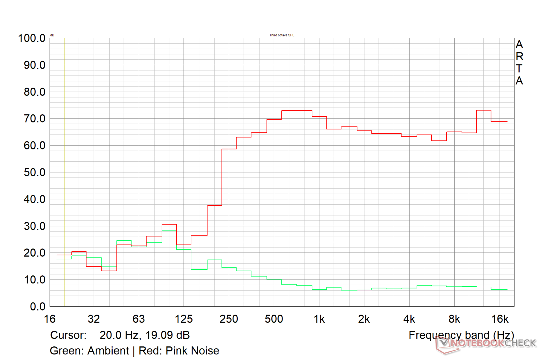 (+) | Die Lautsprecher können relativ laut spielen (84.7 dB)