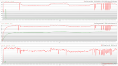 Unser Prime95-Stresstest ergab, dass der eingesetzte i7-13650HX eine maximale Taktrate von fast 4 GHz (bei einem Verbrauch von 162 W) erreicht. Dieser doch relativ hohe Wert senkt sich nach einigen Momenten und erreicht 124 W.