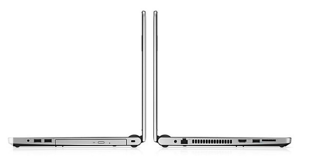 Die Grafikkarte ist eine normale Intel HD Graphics, doch eine schnellere NVIDIA GeForce 920M mit 2 GB DDR3 steht auch zur Auswahl. Die Inspiron 14-5458 Serie verfügt zudem ein DVD-Load mit Tray-Lademechanismus, was für ultraportable Laptops selten ist, die üblicherweise über ein eigenständiges optisches USB-Laufwerk verfügen. An kabellosen Modulen bietet das Dell normales Bluetooth 4.0 und WiFi Dual Band. Zudem bietet der Laptop eine Webcam, die in HD 720p aufnimmt, einen USB-3.0-Port, zwei USB-2.0-Ports, einen Kensington-Slot für Sicherheit, einen Media-Card-Slot, einen HDMI-1.4a-Port und einen Ethernet-Port. Schließlich gibt es eine spritzwassergeschützte Tastatur und einen 4-Zellen-Akku.