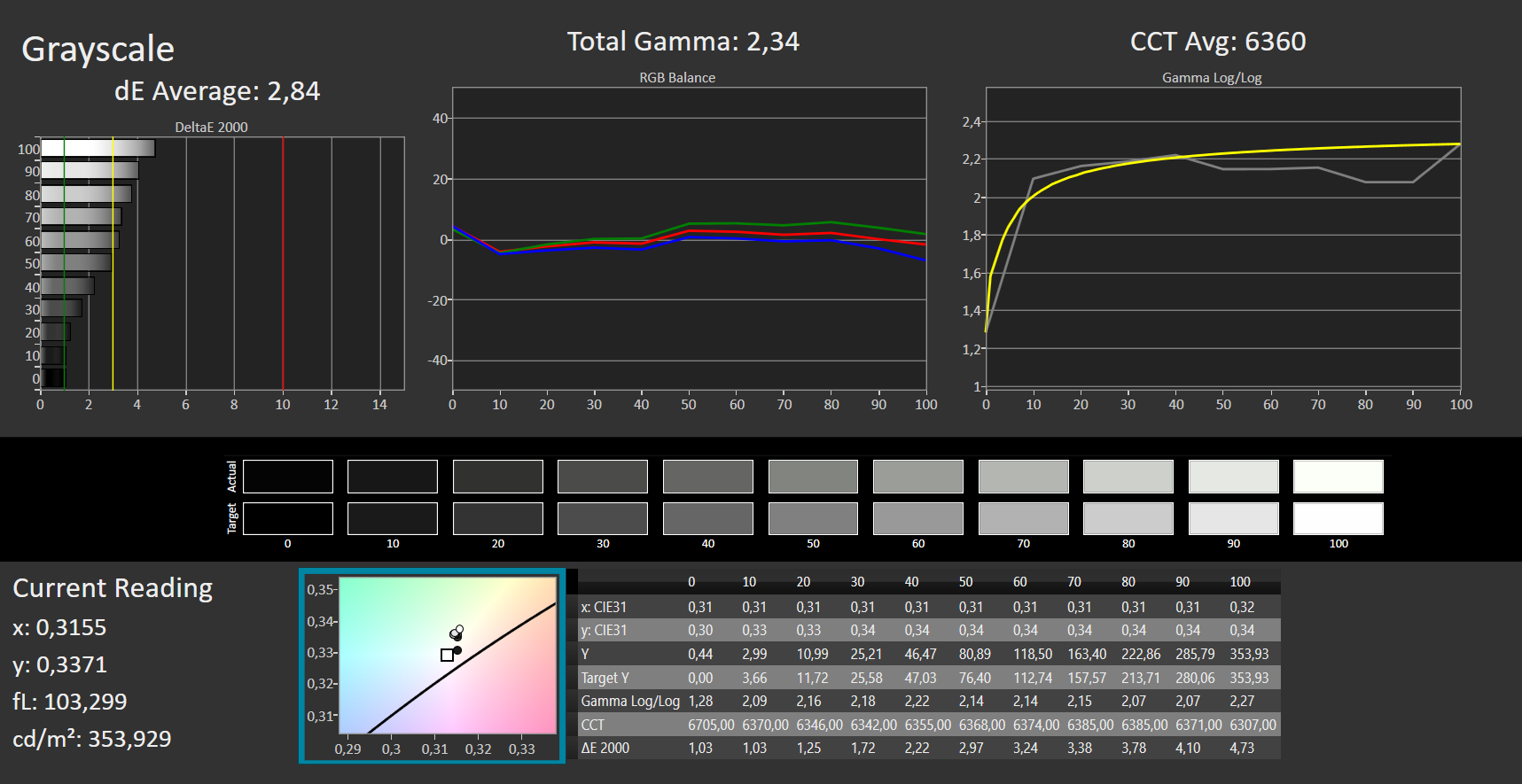 ΔE Greyscale Calman: 2.84 | ∀{0.09-98 Ø5}