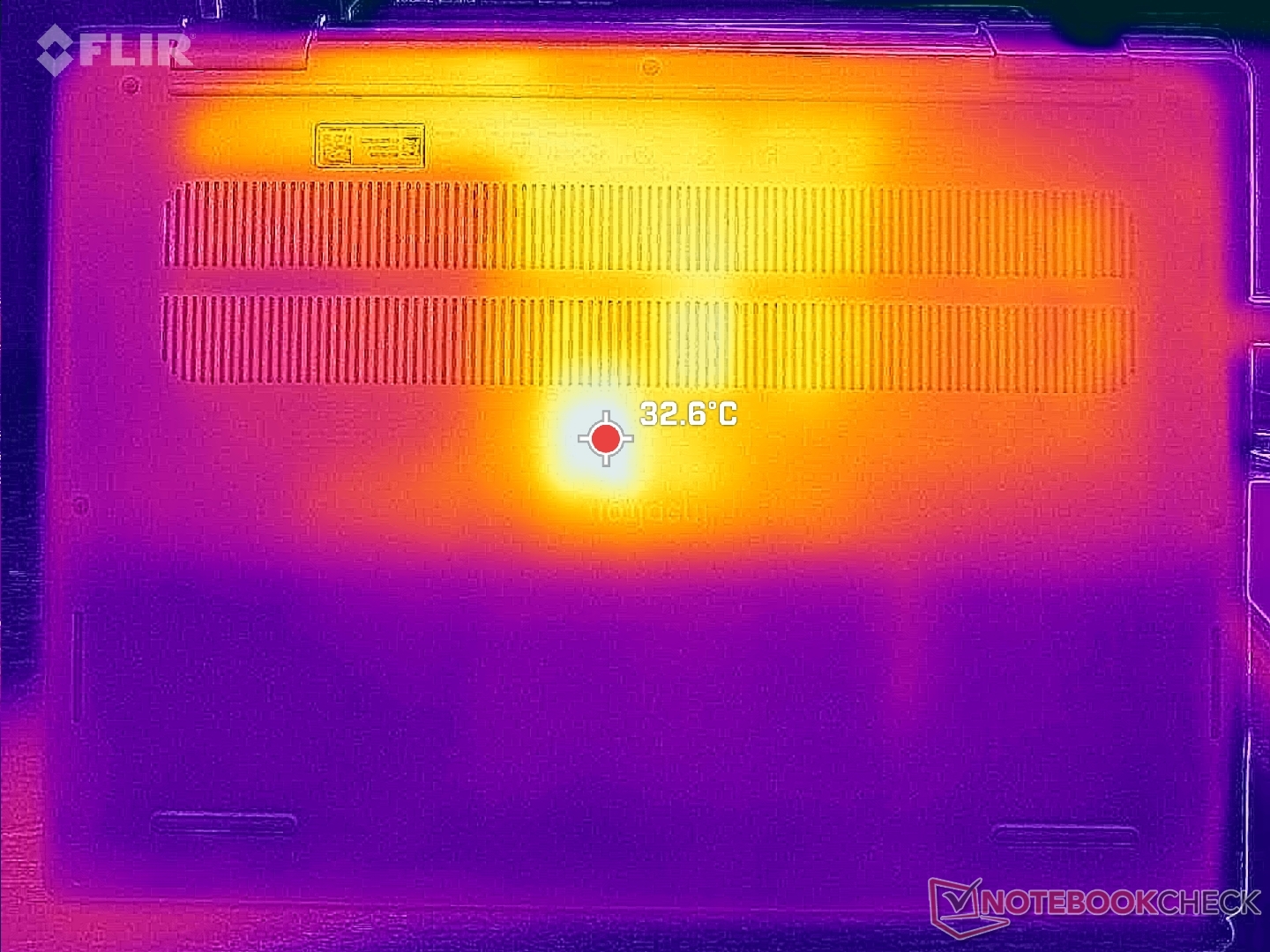 (+) Die Handballen und der Touchpad-Bereich sind mit gemessenen 29.8 °C kühler als die typische Hauttemperatur und fühlen sich dadurch kühl an.