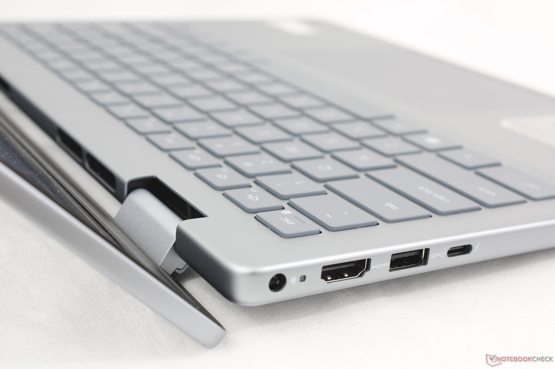 Alle Anschlüsse des älteren Inspiron 14 Plus 7420 sind retour. Der HDMI-Anschluss wurde allerdings auf 1,4 herabgestuft. Dell bestätigt offiziell, dass die maximale Ausgabe auf 1080p60 eingeschränkt ist. 2K bzw. 4K werden nicht unterstützt. Wir empfehlen Nutzern daher unbedingt, den DisplayPort-via-USB-C-Anschluss zu verwenden, wenn sie das Gerät mit externen 2K- oder 4K-Monitoren verbinden.