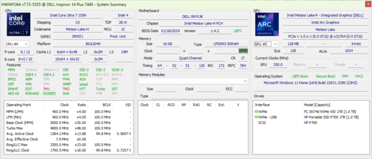 | 85.2 % v7 (old) | 03 / 2024 | Dell Inspiron 14 Plus 7440 Ultra 7 155H, Arc 8-Core | 1.6 kg | 18.99 mm | 14.00" | 2240x1400 | |