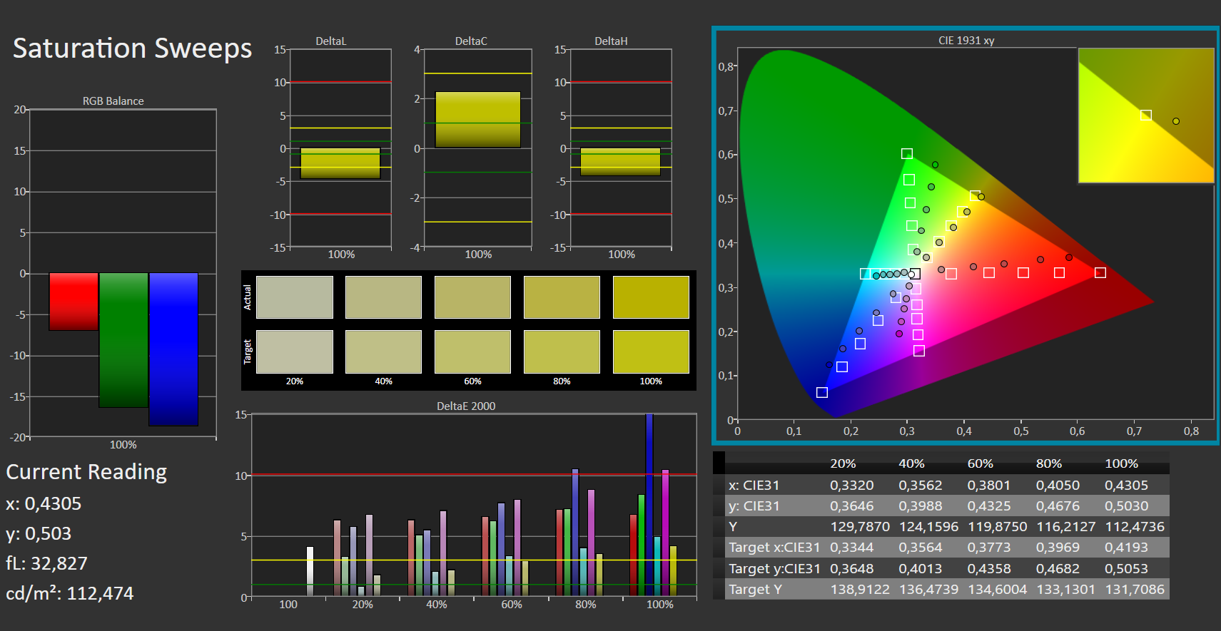 ΔE Greyscale Calman: 3.36 | ∀{0.09-98 Ø5}