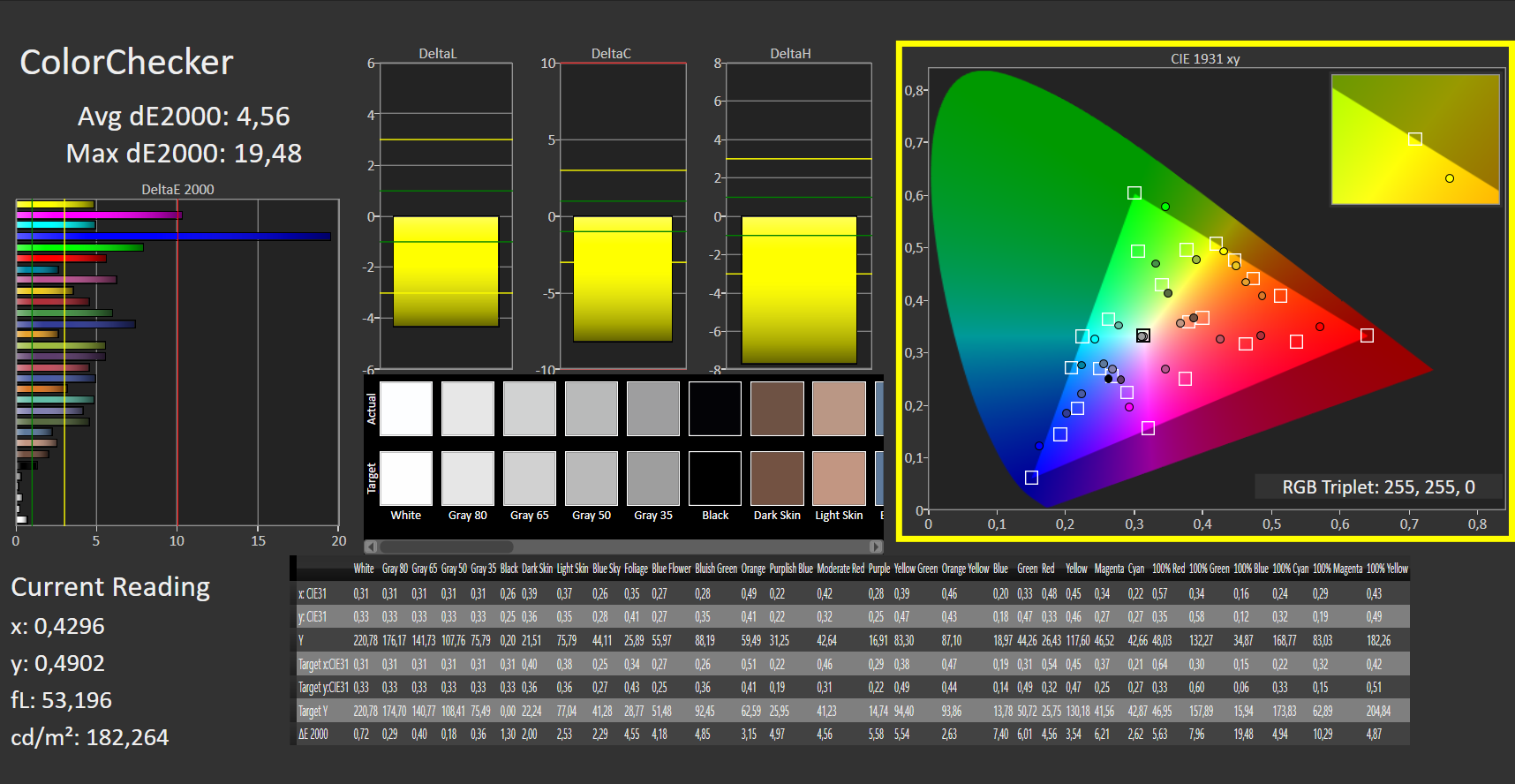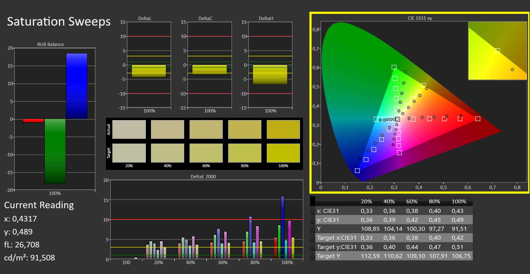 ΔE ColorChecker Calman: 4.11 | ∀{0.5-29.43 Ø4.78}