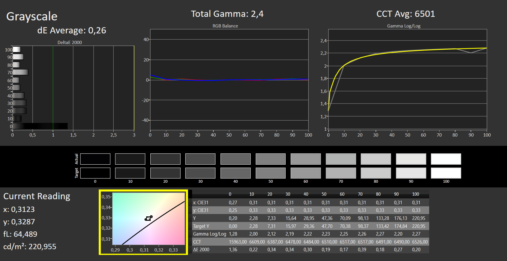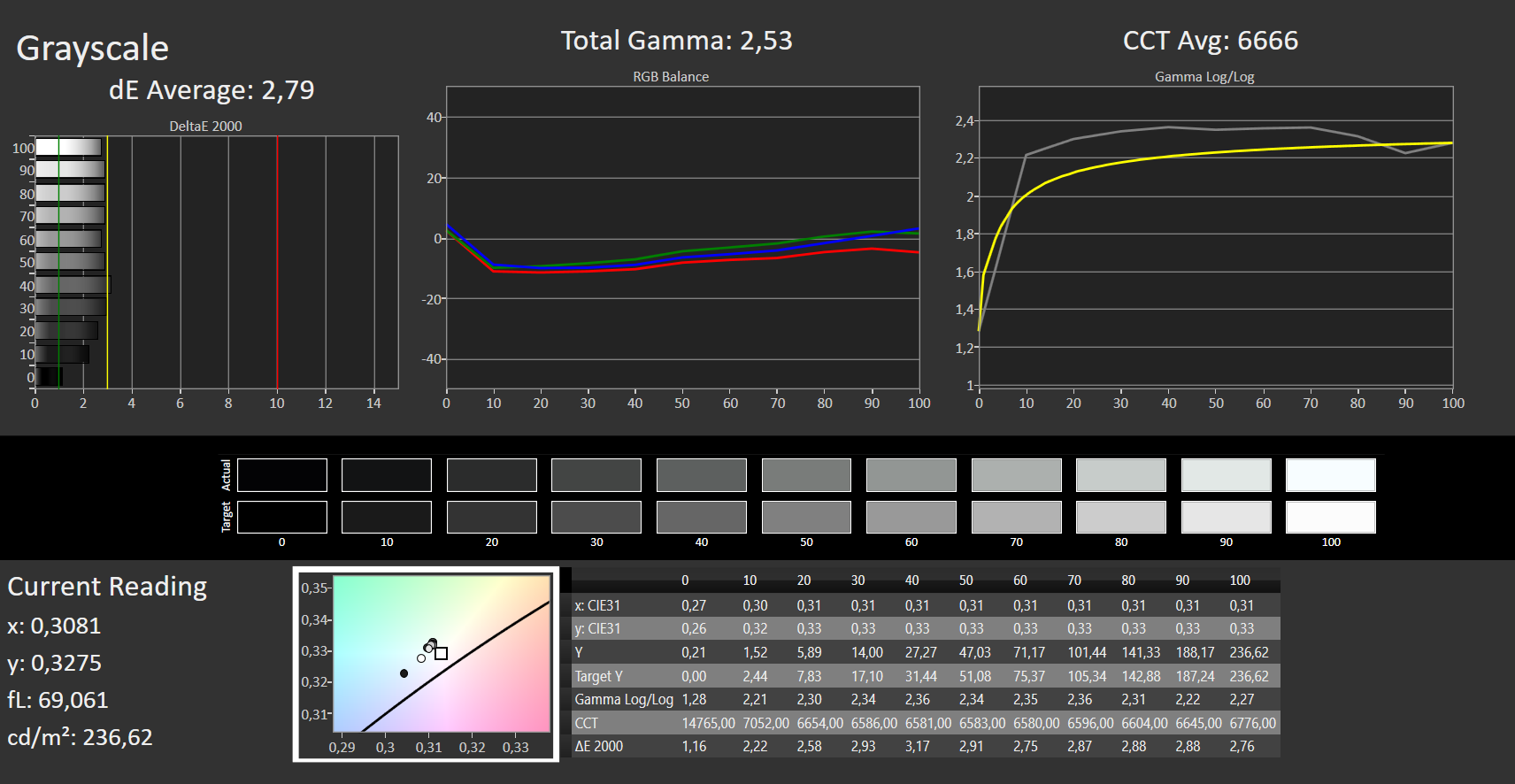 ΔE Greyscale Calman: 2.79 | ∀{0.09-98 Ø5}