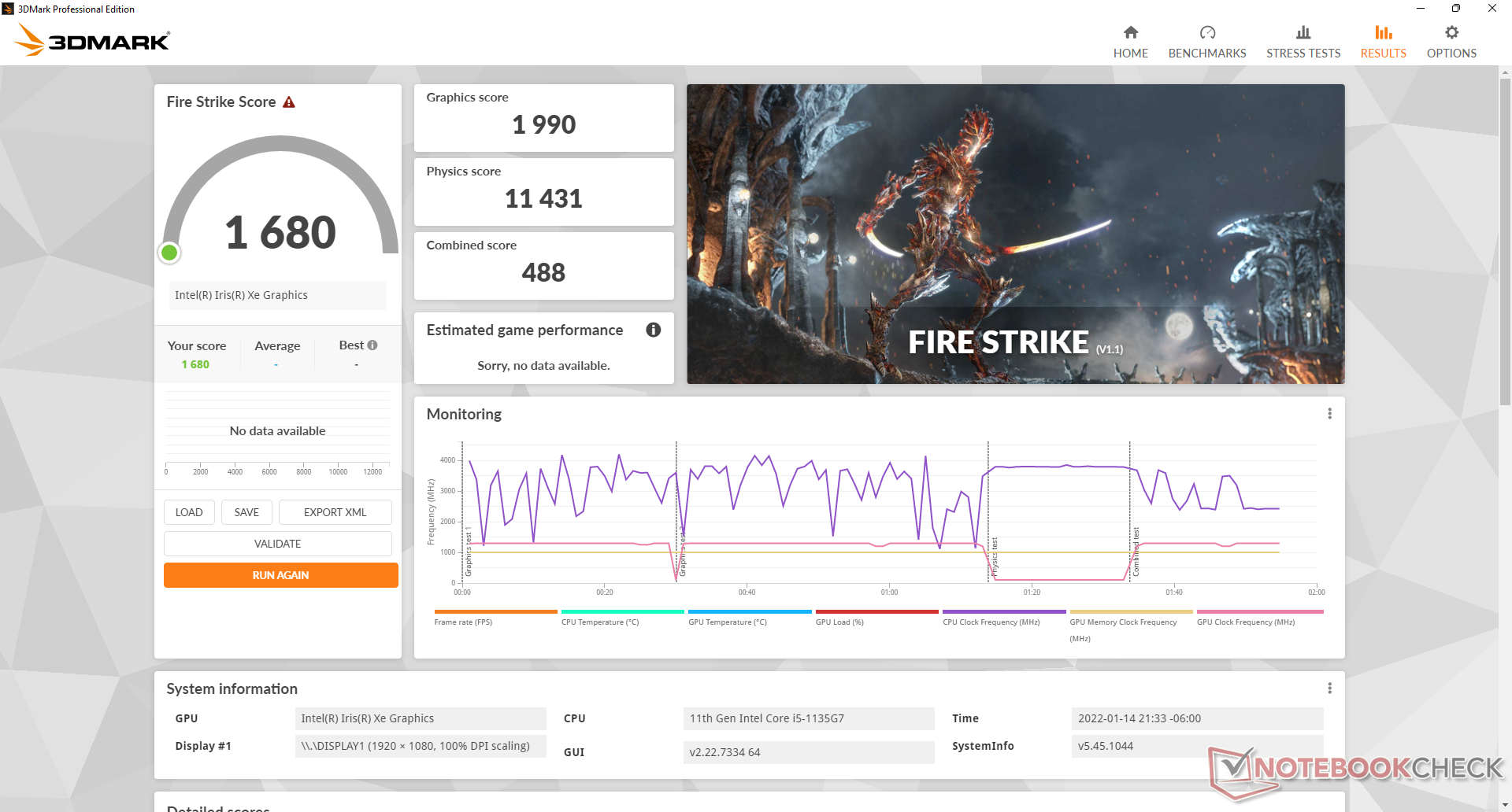 Im Akkumodus wird die Leistung nicht weiter eingeschränkt. Ein erneuter 3DMark-11-Durchlauf erbringt quasi den gleichen Score wie am Netzteil.
