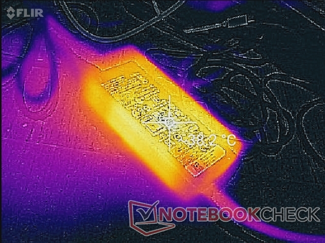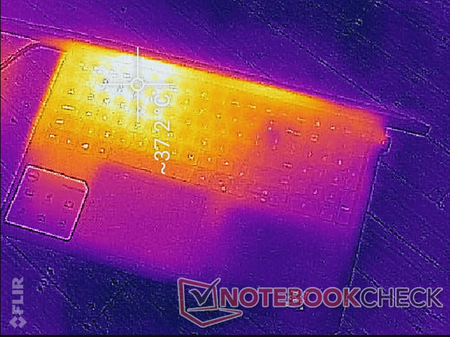 (+) Die maximale Temperatur auf der Oberseite ist 37.8 °C. Im Vergleich liegt der Klassendurchschnitt bei 34.3 °C (von 21.2 bis 62.5 °C für die Klasse Office).