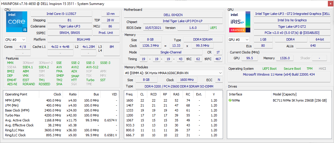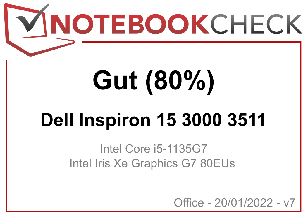 | 79.9 % v7 (old) | 01 / 2022 | Dell Inspiron 15 3000 3511 i5-1135G7, Iris Xe G7 80EUs | 1.7 kg | 18.99 mm | 15.60" | 1920x1080 | |