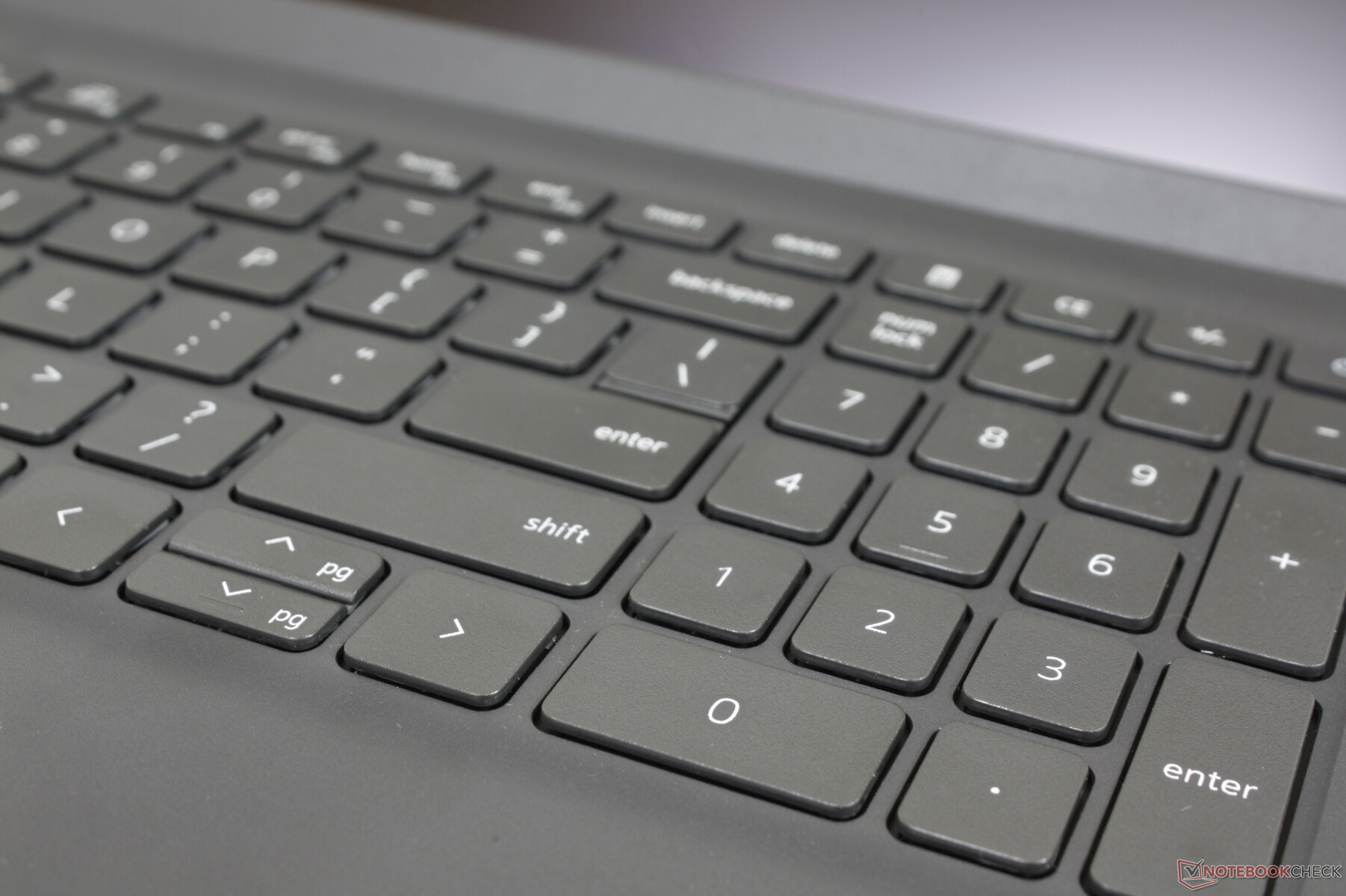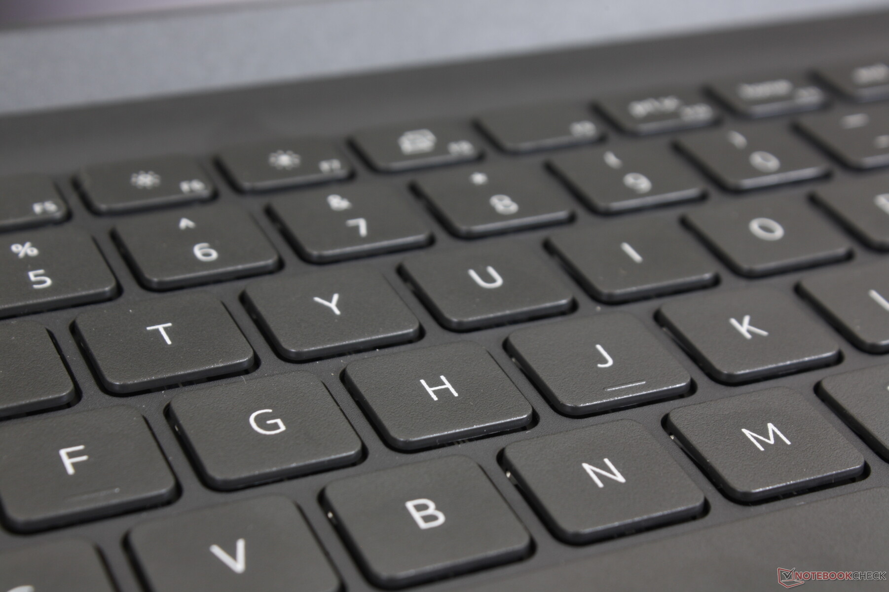 Das Tastenfeedback ist etwas leichter und weicher als uns lieb ist, woraus ein etwas schwammiges Schreibgefühl resultiert. Besonders die Leer- und Eingabetaste sind schwächer als ihre Pendants im HP Pavilion, Lenovo IdeaPad oder Asus VivoBook.