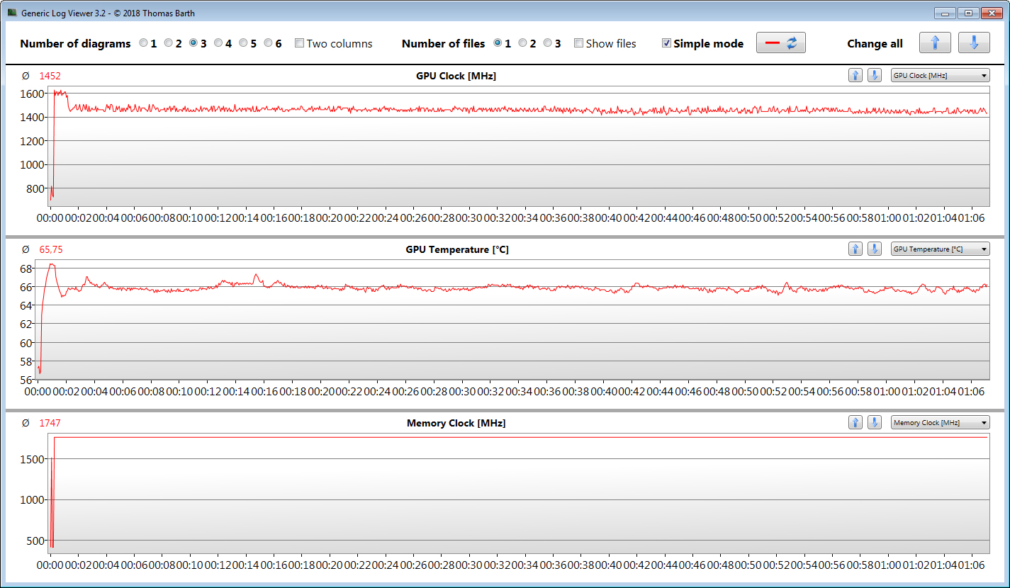 Den Stresstest (Prime95 und Furmark laufen für mindestens eine Stunde) beginnen CPU bzw. GPU mit relativ hohen Geschwindigkeiten. Im weiteren Verlauf sinken die Werte auf 400 MHz bis 1,4 GHz bzw. etwa 1.050 MHz. Der Stresstest stellt ein Extremszenario dar. Wir überprüfen mit diesem Test, ob das System bei voller Auslastung stabil läuft.