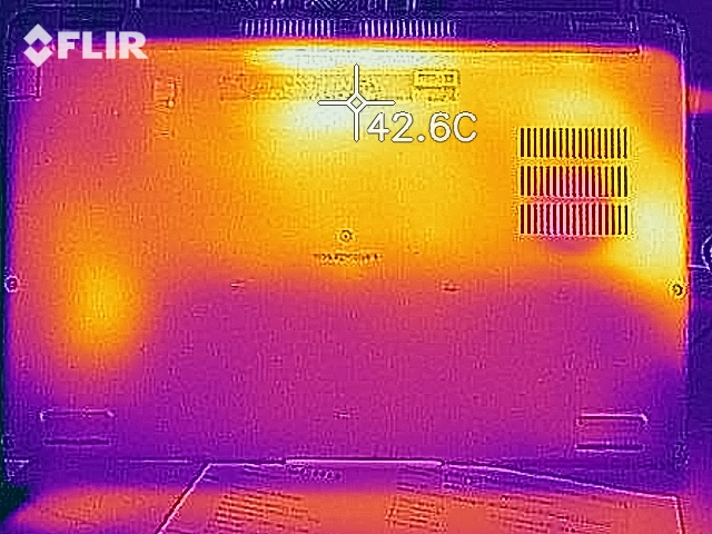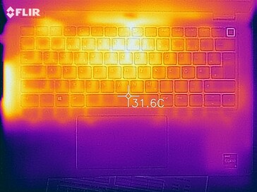 (+) Die Handballen und der Touchpad-Bereich sind mit gemessenen 28.8 °C kühler als die typische Hauttemperatur und fühlen sich dadurch kühl an.