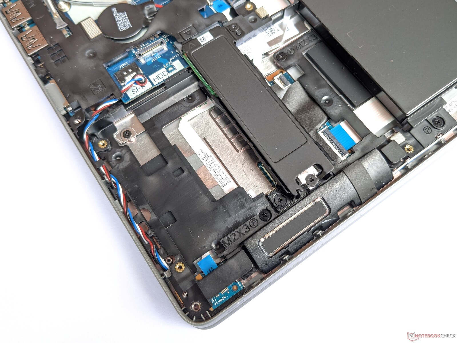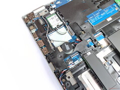 Nutzer können die Bodenplatte des Latitude 15 entfernen, nachdem alle Schrauben gelöst wurden. Dadurch wird der Zugriff auf zwei RAM-Bänke und den Massenspeicher frei. Das Dell-Notebook unterstützt den Einsatz eines SATA-Laufwerks, welches allerdings nur als Ersatz für den M.2-Speicher eingesetzt werden kann. Ein Einsatz beider Komponenten ist nicht gleichzeitig möglich. Neben dem WLAN-Modul befindet sich ein vorbereiteter Platz für ein WWAN-Modul. Auch die zugehörigen Antennen sind bereits im Gehäuse verlegt.