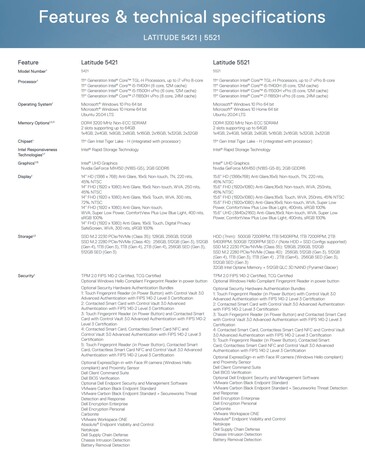 Sowohl das Latitude 5421 als auch das Latitude 5521 basieren auf brandneuer Intel Tiger Lake-H-Technologie, sprich sie setzen auf die neuen 10 nm Prozessoren der 11. Core-Generation aber in der 45 Watt starken Ausführung. Das Dell Latitude 5421 ist hierbei die 14 Zoll Variante, das Dell Latitude 5521 kommt mit 15,6 Zoll Display, in beiden Fällen stehen, wie so oft bei Dell, viele Displayoptionen zur Auswahl, darunter sehr fragwürdige Einsteiger-Panels mit HD-Auflösung aber auch sinnvollere Touch- und Non-Touchvarianten bis rauf zur 4K-Auflösung, zumindest beim Latitude 5521.