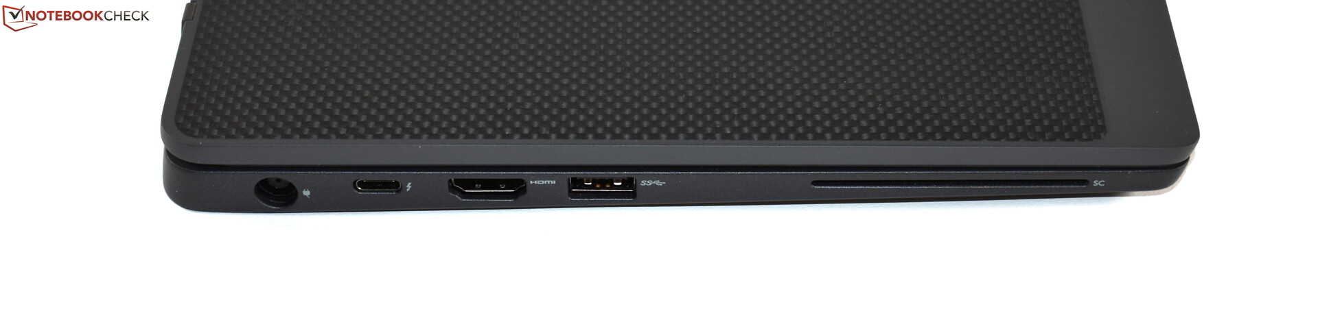 Die schwarz-graue Version des Latitude 7300 unterscheidet sich von der silbernen Variante nicht nur farblich, sondern auch von den Materialien her. Beim silbernen Dell Latitude 7300 setzt Dell auf gebürstete Aluminiumoberflächen für Handballenauflage und LCD-Cover. Unser Testgerät hat dagegen eine matte, gummierte Oberfläche. Diese hat äußerlich am Displaydeckel zudem eine gewobene Carbonoptik, womit Dell natürlich hervorheben will, dass der Deckel aus Carbon-Faser-Kunststoff besteht. Die Basiseinheit ist dagegen größtenteils aus Magnesium gefertigt.