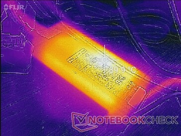 (-) Auf der Unterseite messen wir eine maximalen Wert von 52.8 °C (im Vergleich zum Durchschnitt von 36.8 °C).