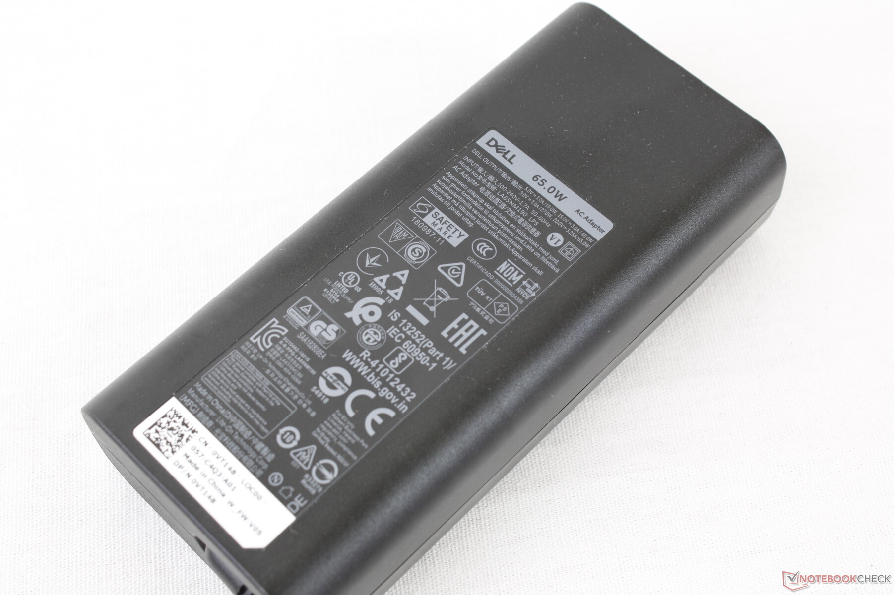 Unter höherer Last steigt die Energieaufnahme und entspricht eher den Ergebnissen seiner Mitstreiter, unter anderem den mit einem Ryzen-Prozessor ausgestatteten Notebooks ThinkPad X395 und HP EliteBook 735 G6, welche beide eine schnellere Grafikleistung erreichen als unser Dell. Wir haben eine maximale Energieaufnahme von 69,7 W gemessen, während sowohl Prime95 als auch FurMark gleichzeitig liefen. Dieser Wert wurde aufgrund der Hitzeentwicklung nur kurzfristig aufrechterhalten - siehe Grafik unten. Dieses Verhalten entspricht den Taktraten, die wir während des Stresstests gemessen haben. Das kleine Netzgerät (~11,2 x 5,2 x 2,8 cm) hat eine Nennleistung von 65 W.