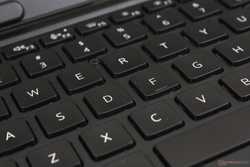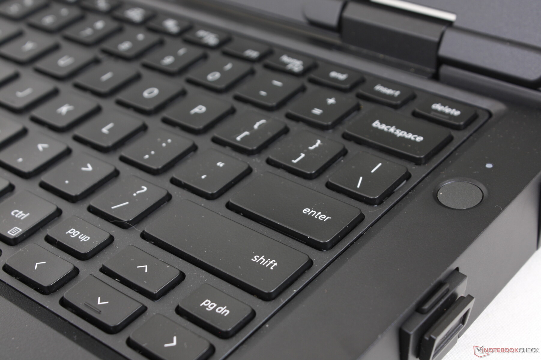Im Vergleich zur Tastatur der Getac-B360-Serie ist die Tastatur des Dell etwas weicher und leiser, aber nicht unbedingt weniger komfortabel zu tippen. Je nach Nutzungsszenario werden die Nutzer vielleicht lieber leisere Tasten haben. Wir bevorzugen jedoch die rote Hintergrundbeleuchtung des B360, da sie etwas augenfreundlicher ist als die weiße Hintergrundbeleuchtung des Dell.