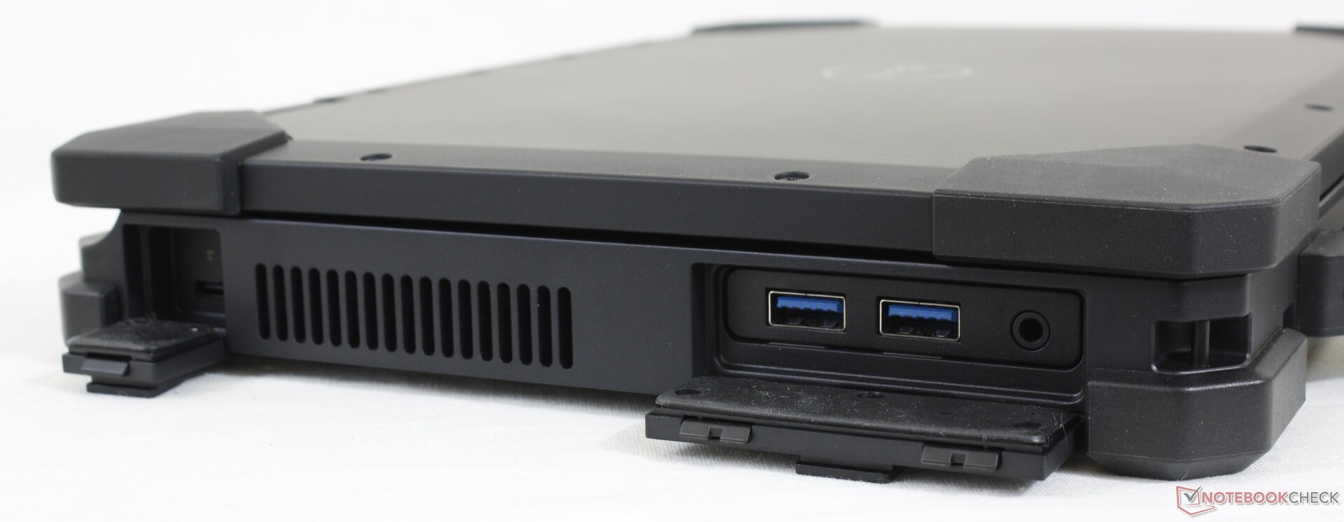 Die Anschlussmöglichkeiten sind zahlreich und viele sind optional, einschließlich der SmartCard- und ExpressCard Reader. Im Gegensatz zum Getac B360 gibt es jedoch keinen VGA-Anschluss, keinen DVD-Leser und keine Ablagefläche.