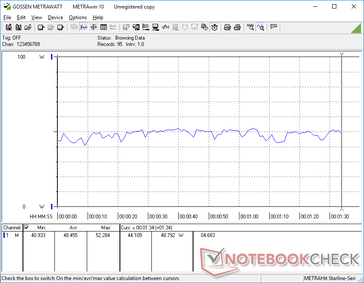 Der Leerlauf auf dem Desktop verbraucht etwa 4 W bei niedrigster Helligkeitseinstellung oder bis zu 12 W, wenn die Helligkeit auf Maximum eingestellt ist. Bei höherer Last, z. B. bei Spielen, werden etwa 45 W benötigt, was nur geringfügig höher ist als bei den meisten anderen Laptops, die mit der gleichen Intel-U-Series-CPU der 11. Generation arbeiten. Beachten Sie, dass der Stromverbrauch deutlich niedriger ist als beim älteren Dell Latitude 7424 Rugged Extreme mit der Radeon-RX-540-GPU, obwohl unser Latitude 7330 Rugged Extreme eine bis zu 40 % schnellere Grafikleistung bietet.
