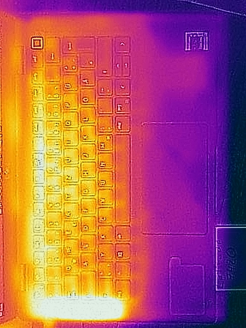 (+) Die Handballen und der Touchpad-Bereich sind mit gemessenen 26.5 °C kühler als die typische Hauttemperatur und fühlen sich dadurch kühl an.