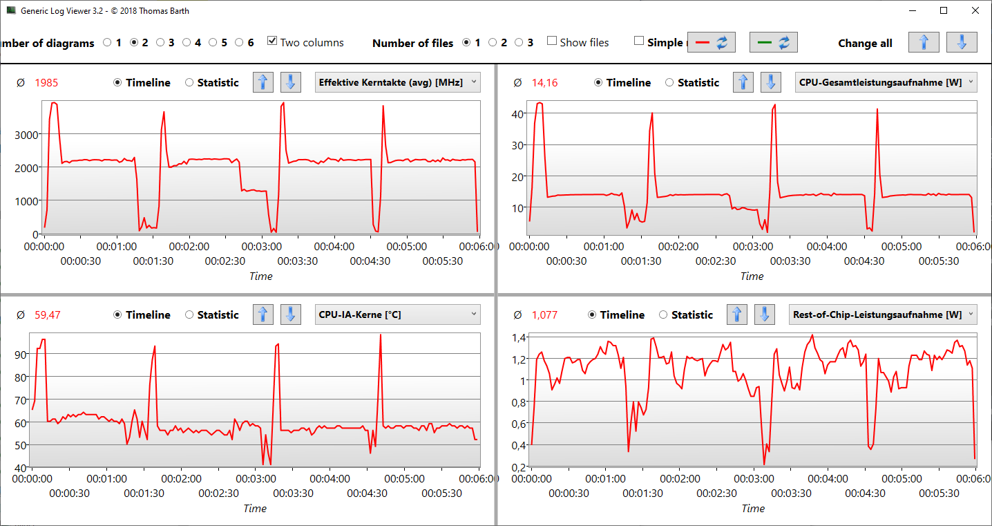 Zeitgleich höchste Last für Prozessor und Grafik sind im Alltag eines Office-Latitude kein gängiges Szenario, weshalb die genannte drastische Drosselung im Alltag nicht auftreten dürfte. Relevanter ist das im Kapitel Leistung genannte Taktverhalten im Cinebench, welches eine moderate Drosselung bei Multi-Core-Last auf 2,2 GHz in Aussicht stellt.