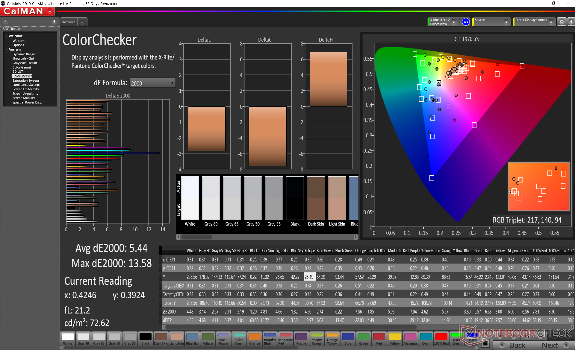 ΔE ColorChecker Calman: 5.44 | ∀{0.5-29.43 Ø4.77}
