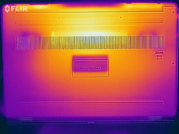 Unsere Messungen bescheinigen dem Dell Precision 5540 Oberflächentemperaturen von bis zu 27,8 °C im Leerlauf und maximal 47,8 °C unter Last. Dabei fühlt sich das Gehäuse sehr warm an und kann insbesondere auf den Oberschenkeln bereits nach kurzer Zeit zu warm werden. Der wärmste Punkt konzentriert sich dabei oben wie unten auf den hinteren Bereich der Mitte.