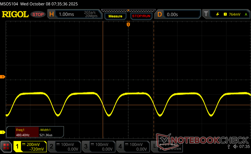 Die maximale Helligkeit erreicht ~550 nits im SDR-Modus oder 1066 nits bei aktiviertem HDR-Modus. Die 4K-HDR-Wiedergabe ist damit genauso gut oder besser als bei den meisten Consumer-Laptops der gehobenen Klasse.