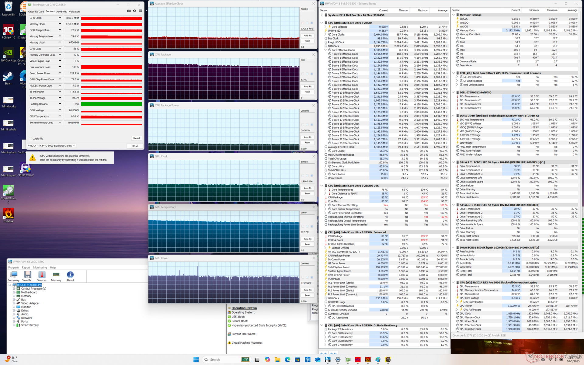 | Cyberpunk 2077 Stress (Performance-Modus) | ~1,4 | 1.890 | 82 | 73 |