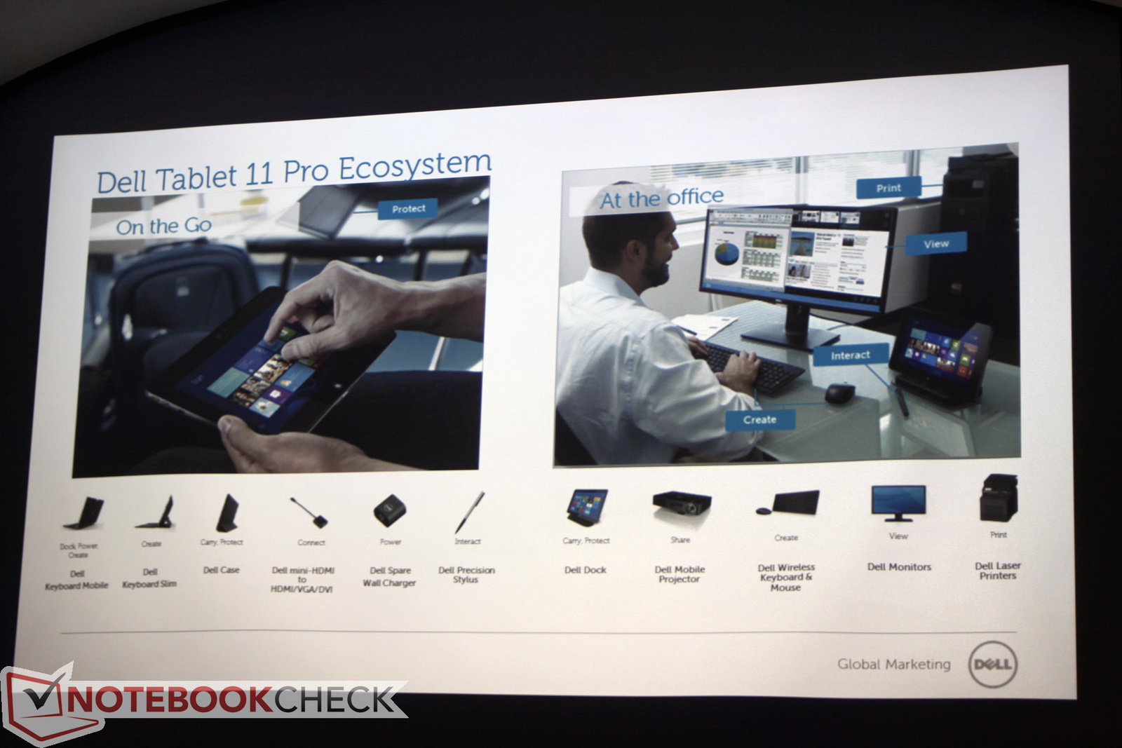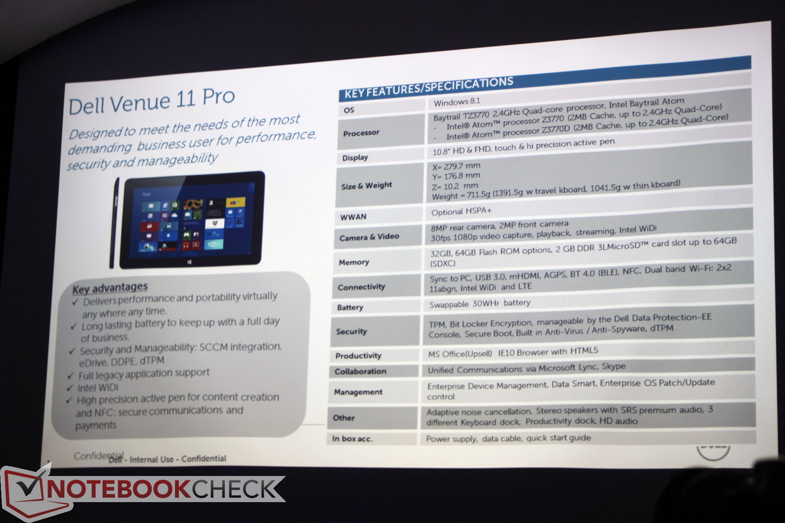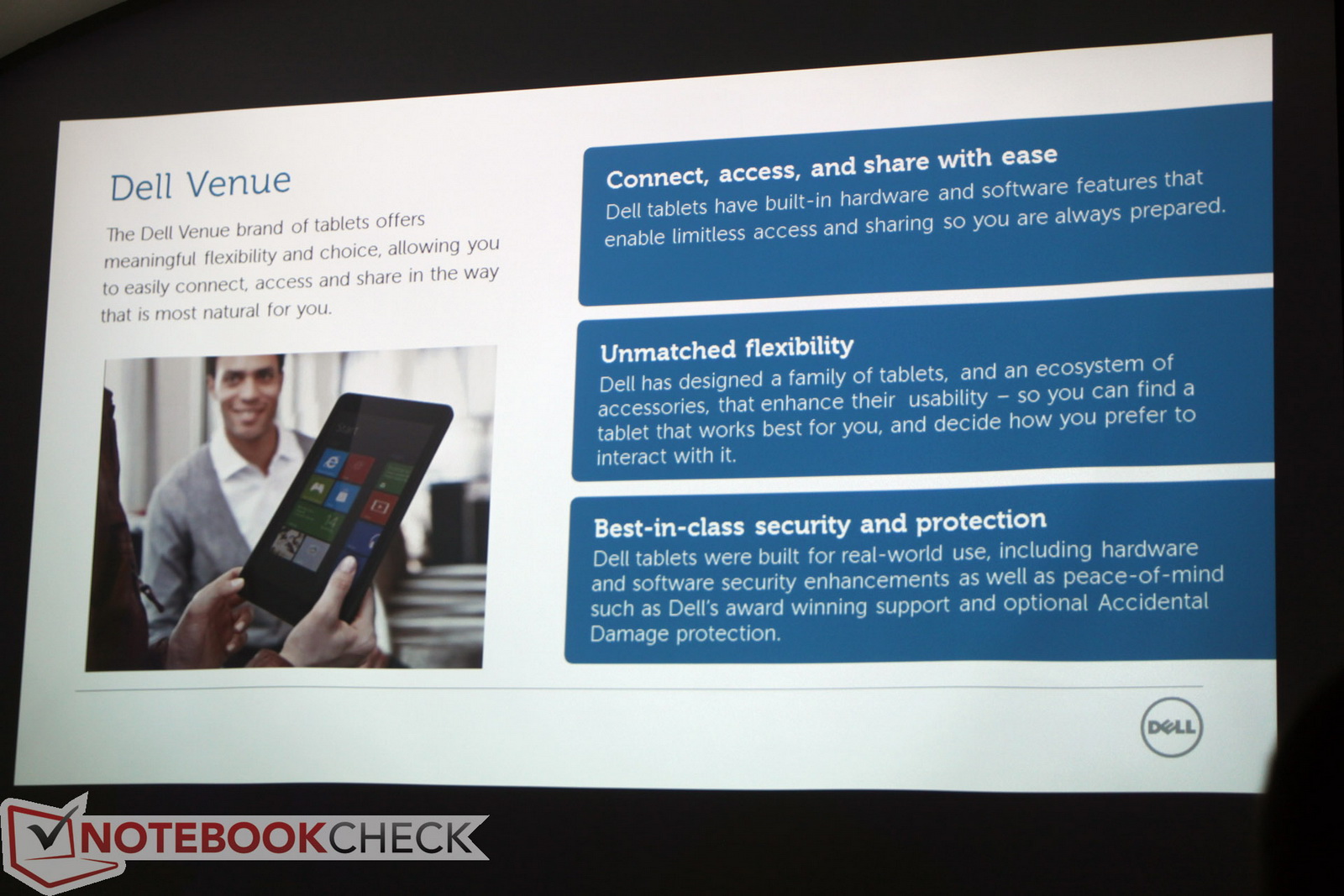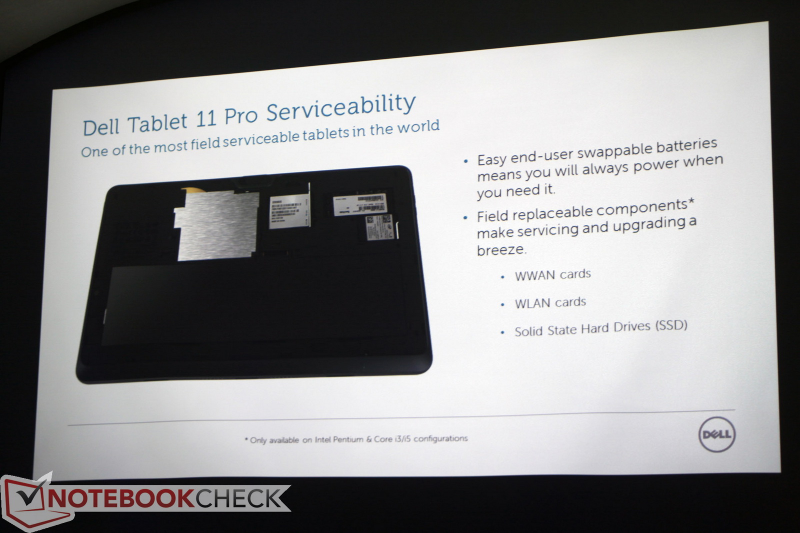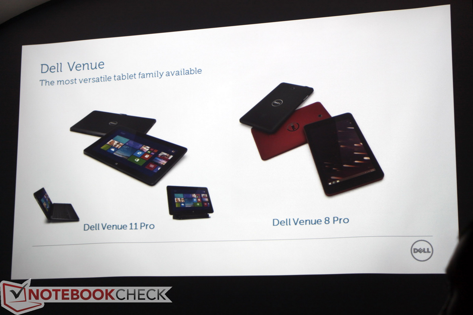 Sein 10,8-Zoll-Tablet Venue 11 Pro bietet Dell sowohl als Tablet mit Intel Atom Z3770 respektive Atom Z3770D Bay Trail Quad-Core und Windows 8.1, als auch in einer Modellvariante mit 64-Bit Windows 8.1 und Intel Pentium, Core i3 oder Core i5 Haswell-Prozessoren an. Das Venue 11 löst die Auslaufmodelle Latitude 10 und XPS 10 ab.