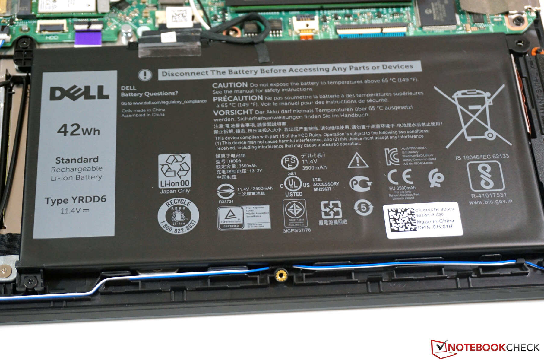 Trotz des recht geringen Preises verbaut Dell eine schnelle PCIe-SSD von Toshiba mit einer Speicherkapazität von 512 GB. Als wir das Gehäuse geöffnet haben, erwartet uns überraschenderweise nur eine kleine M.2-2242-SSD, die mit einem kleinen Adapter festgeschraubt wurde. Eine normale M.2-2280-SSD würde aber ebenfalls passen. Neben dem Akku ist zudem noch ein Schacht für eine normale 2,5-Zoll-Festplatte inklusive dem benötigten Befestigungsmaterial.