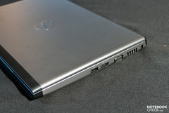 Wie die beiden größeren Kollegen greift auch das Vostro 3300 lediglich auf seine Seitenkanten zurück, wenn es darum geht dem Benutzer möglichst ergonomisch diverse Ein- und Ausgänge zu präsentieren. Was geboten wird, fällt allerdings äußerst knapp aus. Gerade einmal zwei USB 2.0 Ports finden sich links und rechts im hinteren Bereich. Dafür darf man sich über eine USB/eSATA Kombination erfreuen, die auch den Betrieb von externen Festplatten interessant werden lässt.