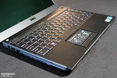 Auch die angebotene Tastatur präsentiert sich im bekannten Vostro-Layout. Alle Tasten haben eine angenehm zu bedienende Größe erhalten, wobei die oberste Zeile der Funktionstasten offenbar noch einen Tick schmäler ausgeführt wurde. Im alltäglichen Betrieb sollte dies aber kaum stören.