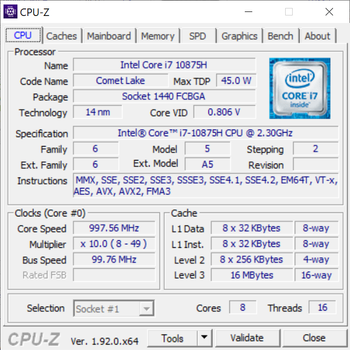 Auch wenn dieser Prozessor zur Gruppe der Core i7 gehört, sollte er eher als Nachfolger des Core i9-9880H bzw. Core i9-9980HK der neunten Generation betrachtet werden, da es sich hierbei um einen Achtkernprozessor handelt. Die Leistung reicht laut CineBench-Benchmark sogar sehr nahe an den Core i9-9980HK im XPS 15 7590 aus dem Vorjahr heran. Nutzer, die von der Basisversion mit Vierkernprozessor Core i5-10300H oder vom Mitteklasseprozessor Core i7-10750H wechseln, werden eine Verbesserung der Multi-Thread-Leistung von etwa 50 bzw. 25 Prozent erhalten.