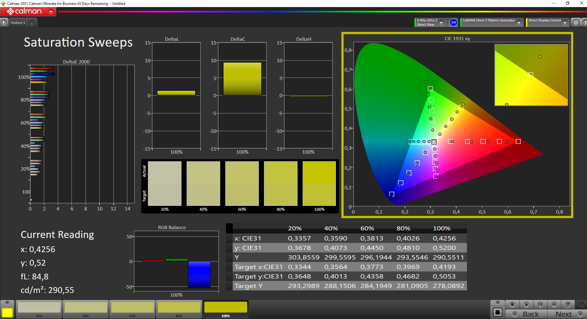 | Delta E Colorchecker * | 3.5 | 1.9 46% | 1.44 59% | 0.8 77% | 3.19 9% | 2.1 40% | 3.2 9% |