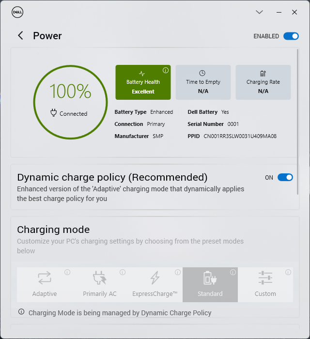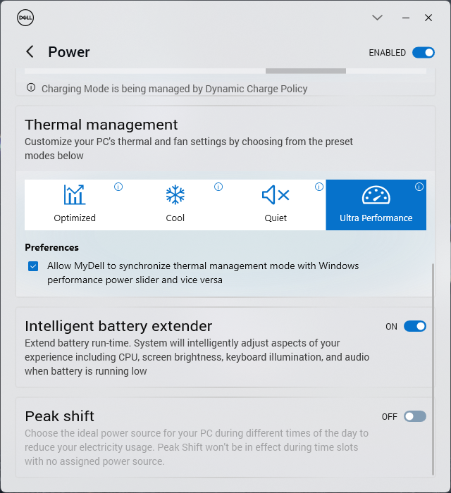 Bevor wir jegliche Benchmarks durchgeführt haben, haben wir auf unserem Gerät den Performance-Modus mithilfe der MyDell App aktiviert. Die Dell Energieeinstellungen sind dabei mit jenen Einstellungen von Windows synchronisiert, was man auf eher wenigen Laptops sieht.