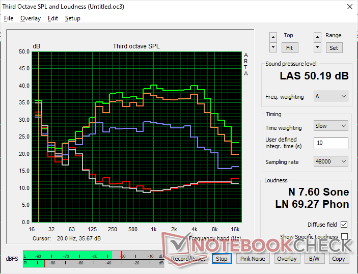 (+) | Die Lautsprecher können relativ laut spielen (87.1 dB)