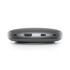 Dazu bietet der Hub zwei USB-A-Ports mit Geschwindigkeiten von bis zu 10 Gbit/s sowie einen HDMI-Anschluss, der einen 4K-Monitor mit bis zu 60 Hz betreiben kann. SD-Kartenleser oder ein Ethernet-Anschluss fehlen allerdings im Gegensatz zu den meisten Konkurrenzprodukten. Der Hub bringt zwei Mikrofone mit, über Buttons an der Oberseite lässt sich die Lautstärke regeln, ein Anruf annehmen oder beenden oder die Mikrofone stummschalten.