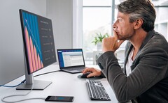 Allen voran das integrierte USB-C-Dock, das ein Notebook mit maximal 90 Watt aufladen kann und dieses dabei direkt um einen weiteren USB-C-Anschluss, um drei USB-A-Ports, um AUX und um Ethernet erweitert. Alternativ lässt sich der Monitor auch über DisplayPort 1.4 oder per HDMI 1.4 an einen Computer anschließen. Der Bildschirm verfügt sogar über einen DisplayPort-Ausgang, sodass bis zu zwei zusätzliche Monitore angeschlossen werden können.