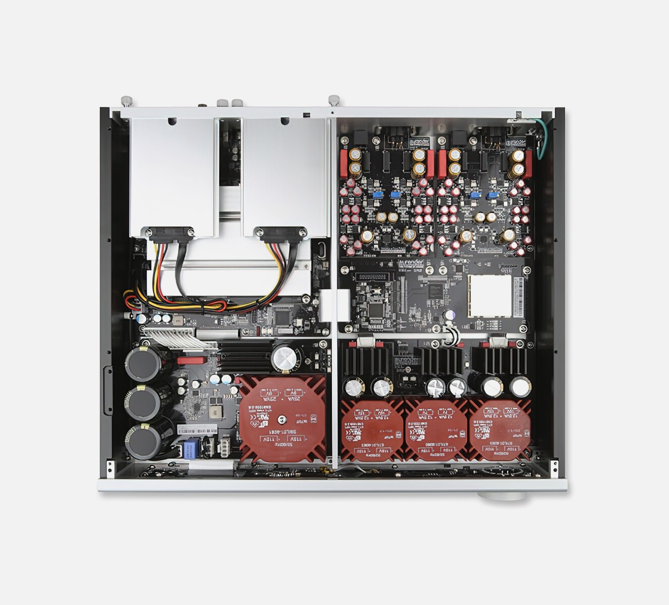 Eines der Highlights der Ausstattung ist der AKM4490 Digital-zu-Analog-Wandler, der in einer Dual-Mono-Konfiguration verbaut wird. Der DAC kann PCM-Inhalte mit maximal 32-bit bei 768 kHz, DSD 512-Dateien und auch MQA-Daten dekodieren. Ein FPGA-basierter Timer verspricht absolute Präzision beim Abspielen von Musik. Der Musikserver agiert zeitgleich als Hi-Fi-Streamer, denn der Aurender A15 unterstützt unter anderem Tidal, Qobuz und Spotify Connect.