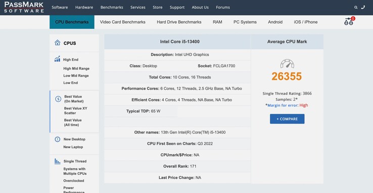 | CPU | PassMark (Single-Core) | PassMark (Multi-Core) |