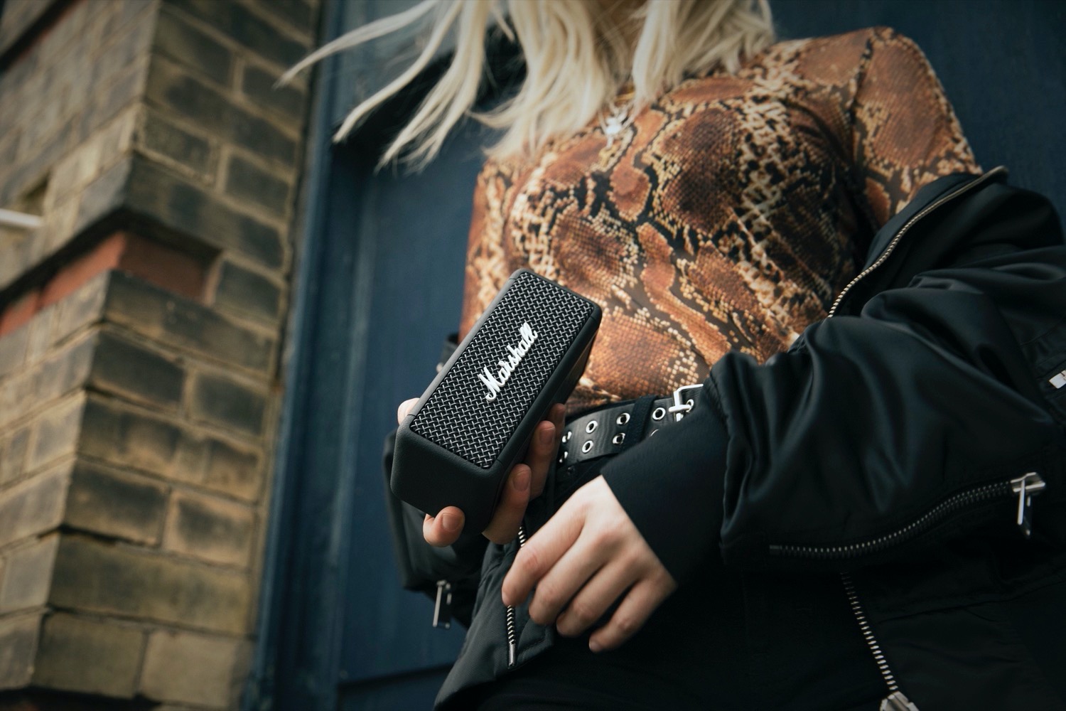 Marshall ist längst bekannt für seine stylischen Lautsprecher, das neueste Modell ist da keine Ausnahme. Das Gehäuse misst gerade einmal 16 x 7,6 x 6,8 Zentimeter bei einem Gewicht von 700 Gramm, trotz der kompakten Maße findet Marschall Platz für zwei 2 Zoll 10 Watt Lautsprecher sowie zwei passive Radiatoren, die gemeinsam für einen satten, klaren und bis zu 87 dB lauten Sound sorgen sollen.