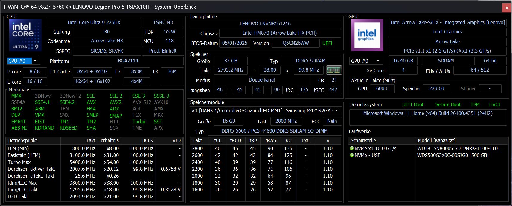 | Lenovo Legion 5 Pro 16IAX10H Intel Core Ultra 9 275HX ⎘ NVIDIA GeForce RTX 5070 Ti Laptop ⎘ 32 GB RAM, 1024 GB SSD | Amazon: 1. 26,99 € KARYLAX - Anti-Spionage-Disp... 2. 22,99 € KARYLAX - Displayschutzfolie... 3. 28,00 € RTDPART Laptop-Lautsprecher ... Listenpreis: 2500 Euro | 2.4 kg | 25.95 mm | 16.00" 2560x1600 189 PPI OLED | |
