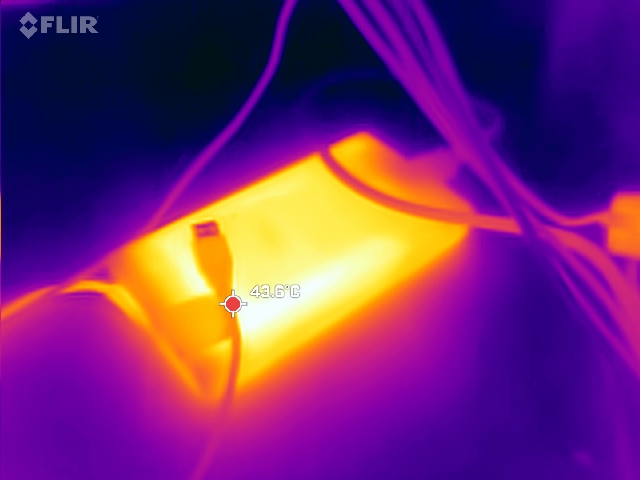 (-) Auf der Unterseite messen wir eine maximalen Wert von 50 °C (im Vergleich zum Durchschnitt von 43.3 °C).